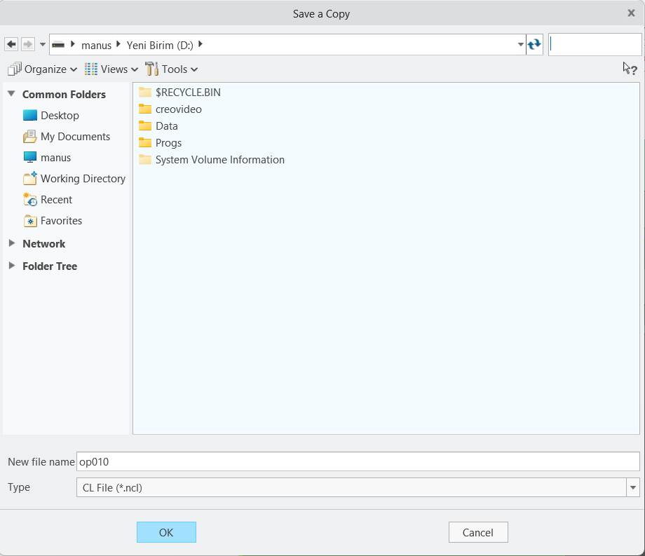 Creating an NCL Output in Creo
